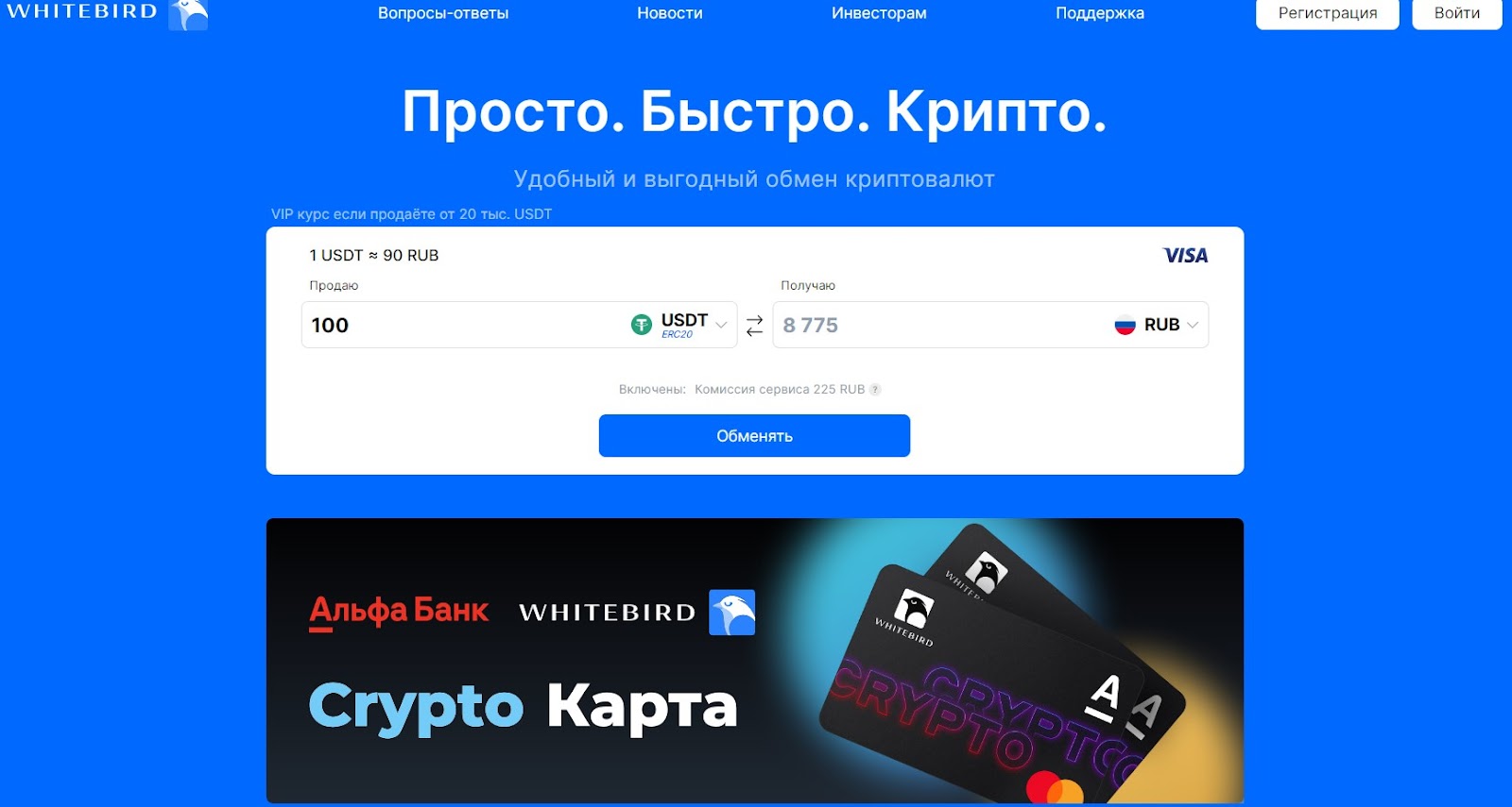Обменник White Bird не является мошенническим: он действительно принадлежит легальной компании, регулируется белорусскими законами. Находится в партнерских отношениях с подразделением Альфа-Банка из Беларуси, у них есть совместная карта для снятия крипты.Основной функцией биржи Whitebird называется возможность привязать карту и выводить через нее деньги в один клик. В этом нет ничего оригинального: существует множество обменников с подобным функционалом. В Телеграме Whitebird io указано, что он поддерживает только карты Visda, которые недоступны для жителей РФ.