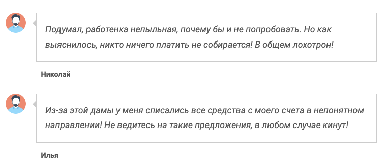 • основательница проекта не приводит настоящих подтверждений тому, что предлагаемый ею способ заработка действительно приносит деньги.