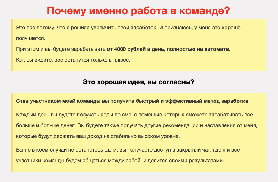 Чтобы стимулировать посетителей сайта оставлять заявки, на сайт добавлены скриншоты банковских выписок и фотографии с деньгами. Это преподносится как доказательства того, что предлагаемый способ заработка действительно приносит деньги.