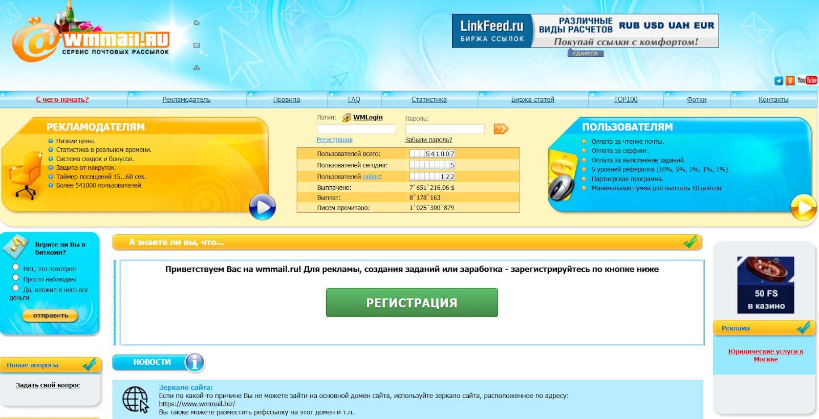 Wmmail ru — это старейший сервис почтовых рассылок в Рунете, работающий с 2004 года. За двадцать лет он не раз менялся, но суть осталась прежней – платформа рассчитана на массовое выполнение мелких задач за минимальное вознаграждение.