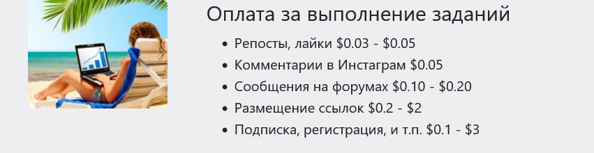 На сайте есть данные об оплате за выполнение заданий: