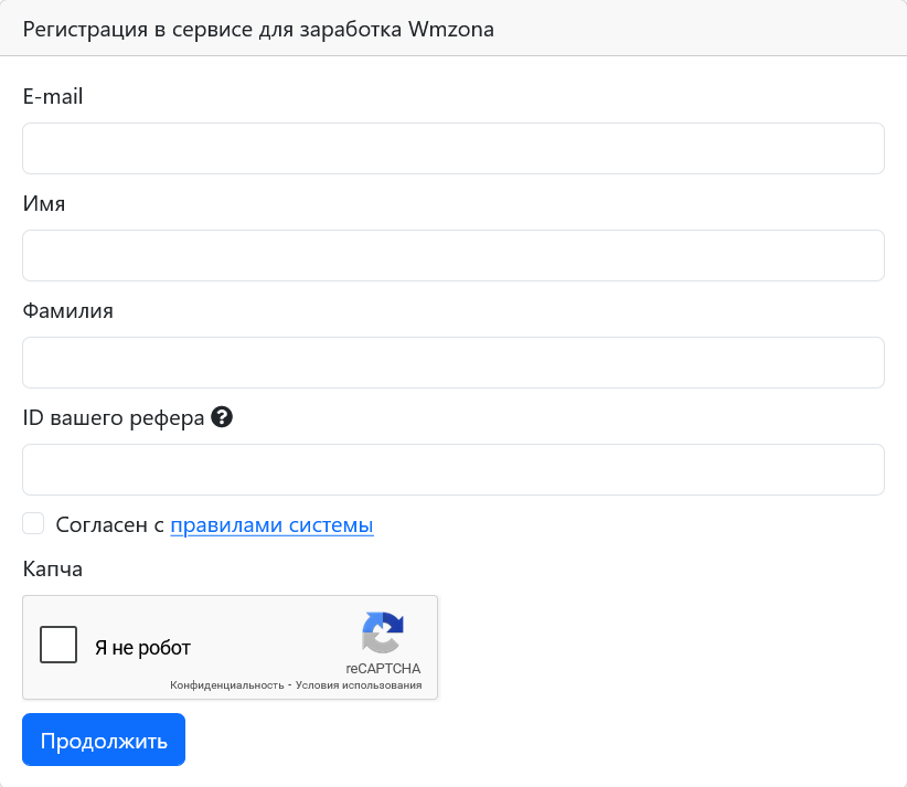 Чтобы начать зарабатывать на площадке, нужно зарегистрироваться. Следует заполнить форму, указав личные данные и e-mail. Если есть человек, который пригласил, нужно указать его реферальный код. Если такового нет, система назначит рефовода случайным образом.