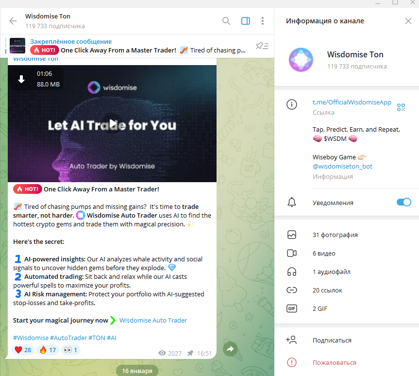 Догадки о том, что проект потерял свою актуальность, подтверждаются и активностью пользователей, которые интересуются контентом в официальных социальных сетях. Например, публикации Wisdomise Ton читает только 2 тысячи пользователей из почти 120 тысяч подписчиков: