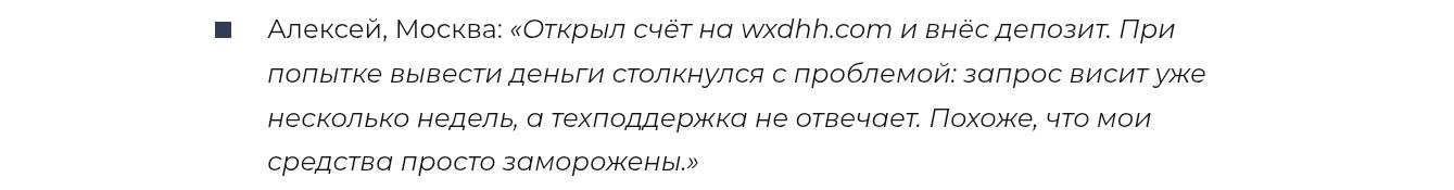Отзывы трейдеров о работе с Wxdhh