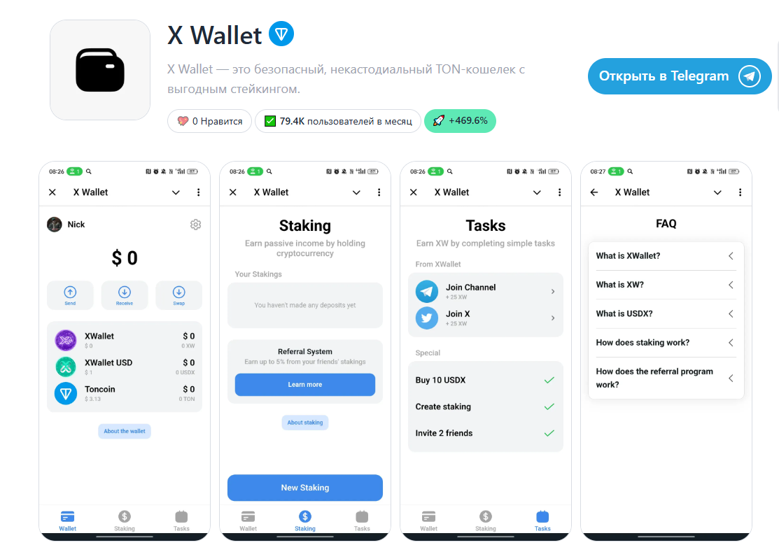 X Wallet в Telegram – это безопасный некастодиальный кошелек на базе TON. Мини-приложение xwalletbot работает прямо в Телеграм. Разработчики сообщают, что кошелек позволяет не только проводить в нем различные операции с криптой, но и дает возможность зарабатывать на стейкинге монет. Можно ли назвать кошелек надежным, или это очередной скам, рассмотрим в статье.