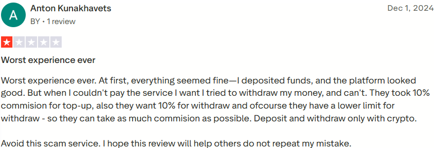 Из плюсов можно выделить только наличие некоторого количества положительных отзывов и отсутствие признаков мошенничества. Платформа может быть интересна тем, кто работает с рекламой или оплачивает иностранные сервисы.