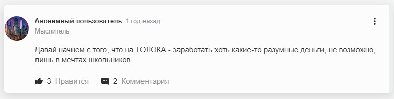 Если собрать отзывы про заработок в «Яндекс Толока» в интернете, ситуация становится совсем печальной. Никто не называет платформу мошеннической, но все сходятся во мнении – заработать там «разумные деньги» невозможно. Как выразился один из юзеров, это «мечты для школьников».