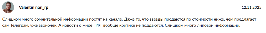 Жалуются на фейковые новости и нереалистичные цены на звезды в боте, что вызывает подозрение в мошенничестве.