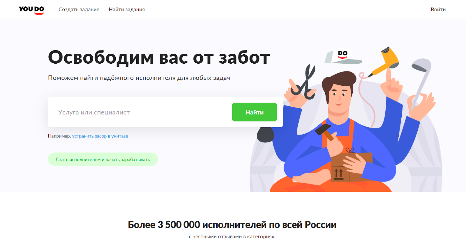 Суть проста: вы описываете задачу, а сервис помогает быстро найти надежного человека, будь то курьер, уборщица, репетитор, дизайнер или мастер на час.