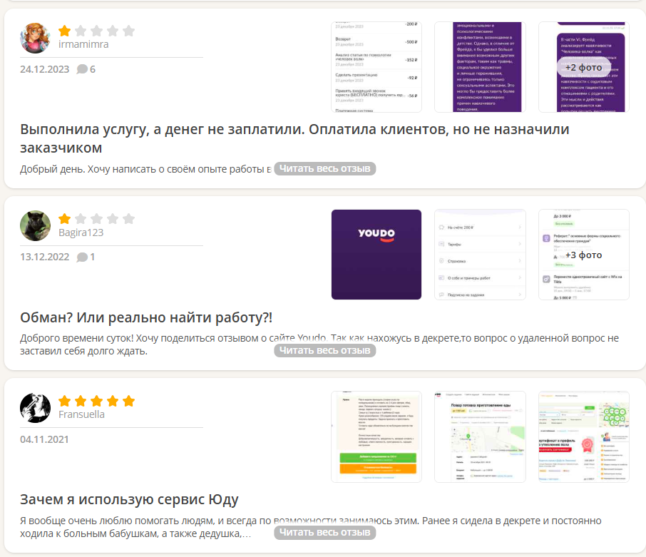 Несмотря на это, на YouDo отзывы о заработке в большинстве своем позитивны.