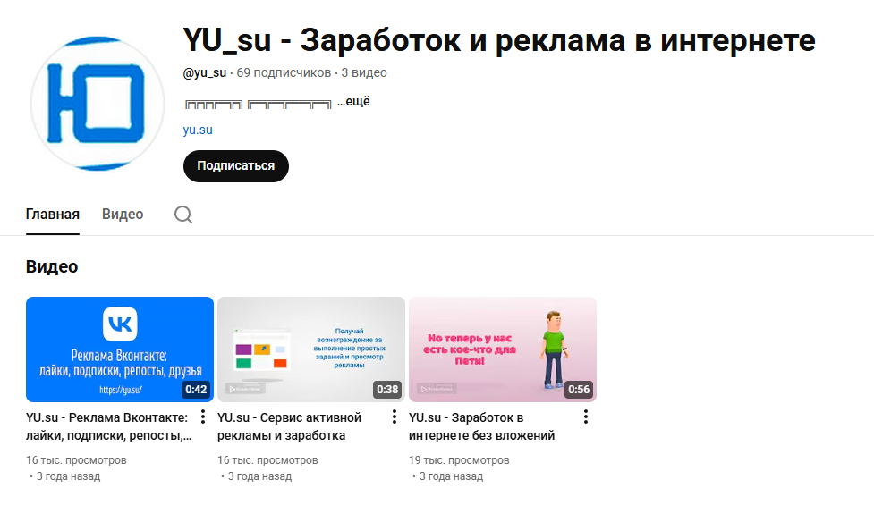 На Ютуб-канал подписалось только 69 пользователей: