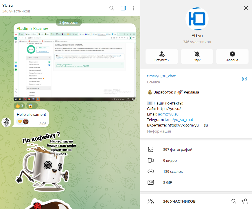 Дополнительно у платформы есть чат для пользователей в Телеграмм: