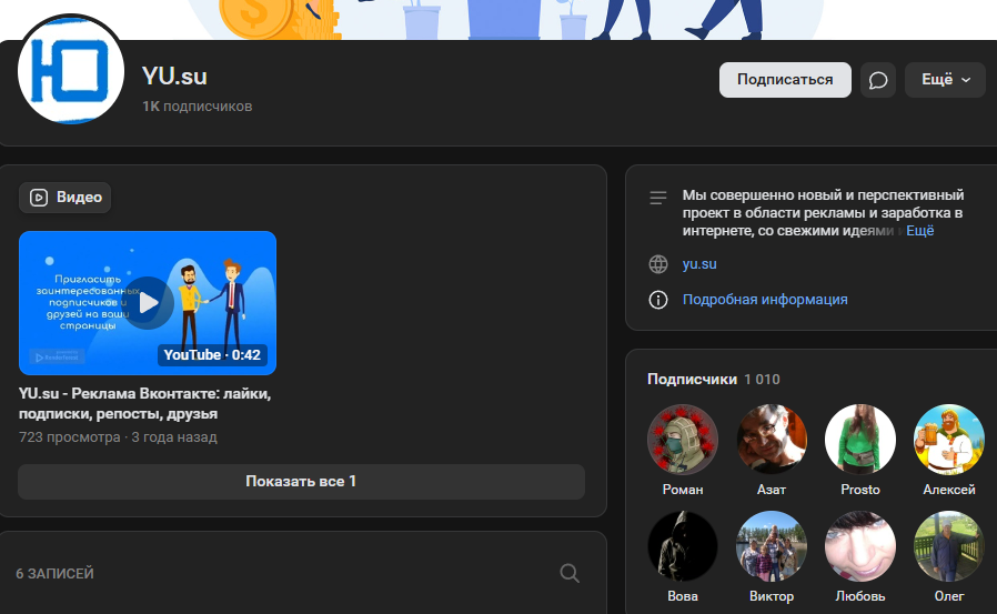 У платформы есть аккаунты в социальных сетях ВК и Ютуб. На группу в ВК подписана 1 тысяча пользователей: