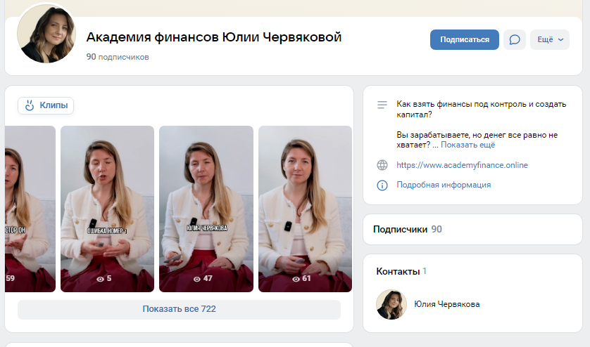 Помимо этого, у Юлии есть аккаунт в ВК Pro Dengi Chervyakova Yulia, где ее читают 90 подписчиков, что для публичной персоны и долларового миллионера как-то мало. На ее YouTube-канал подписано 3 тыс. человек, но видео собирают очень мало просмотров. Для связи с подписчиками есть e-mail gkfocusgroup @ gmail com, на письма Юлия не отвечает.