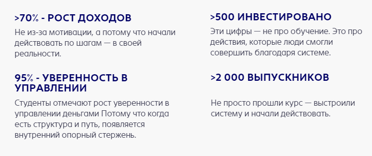 Юлия Червякова утверждает, что студенты ее «Академии Финансов» смогли успешно инвестировать деньги и добиться успеха, но это всего лишь слова. Никаких реальных кейсов наставница не предоставляет, личности клиентов не раскрывает.