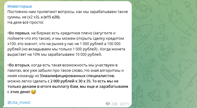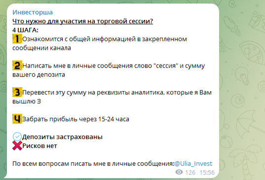 Обзор телеграм-канала Юлии Инвесторши, анализ деятельности и развод скам-проекта Ulia invest, отзывы о Юлии Инвест