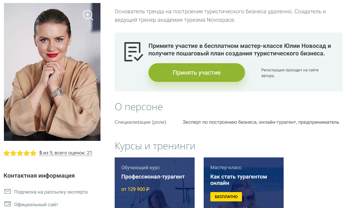В социальных сетях предприниматель Юлия Новосад размещает положительные отзывы людей об обучении в онлайн академии туризма. Тур-эксперт утверждает, что смогла освоить основы интересной профессиональной направленности и организовать не только свой бизнес, но и возглавить online проект по обучению пользователей ведению прибыльного туристического дела. Мы решили проанализировать характеристики платформы Юли и выяснить, действительно ли эксперт по туризму занимается качественным обучением граждан в online университете.