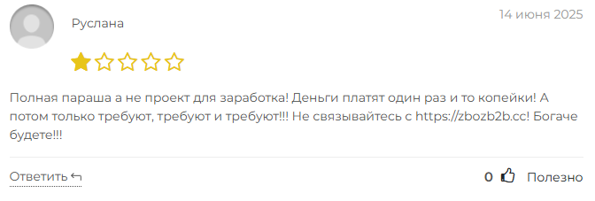 Zbozb2b выглядит как типичный развод на обратном выкупе товаров. Такого мошенничества появилось очень много. Сначала это были китайские площадки, теперь европейские. Если кто-то предлагает помочь ему с такой работой, это точно обманщики.