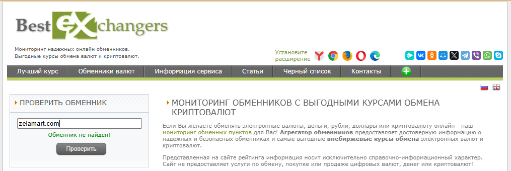 Проверить надежность криптообменника можно при помощи сервисов мониторинга. Мы проверили Zelamart на сайтах BestChange и BestExachangers. И там, и там обменник отсутствует с списке качественных сервисов. Поэтому вопрос возможности его использования остается неразрешенным.
