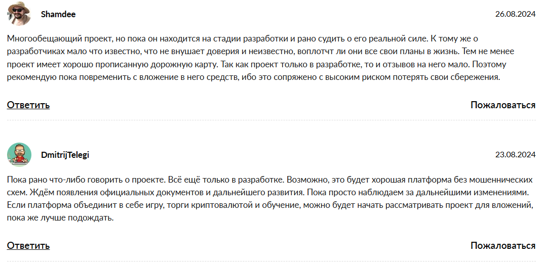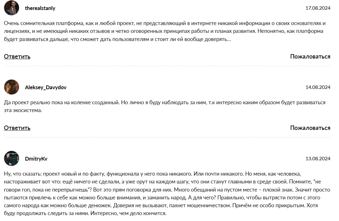 Пользователи пишут, что, по сути, платформа пустая и не содержит ничего кроме обещаний, красивой легенды и продажи тикетов.