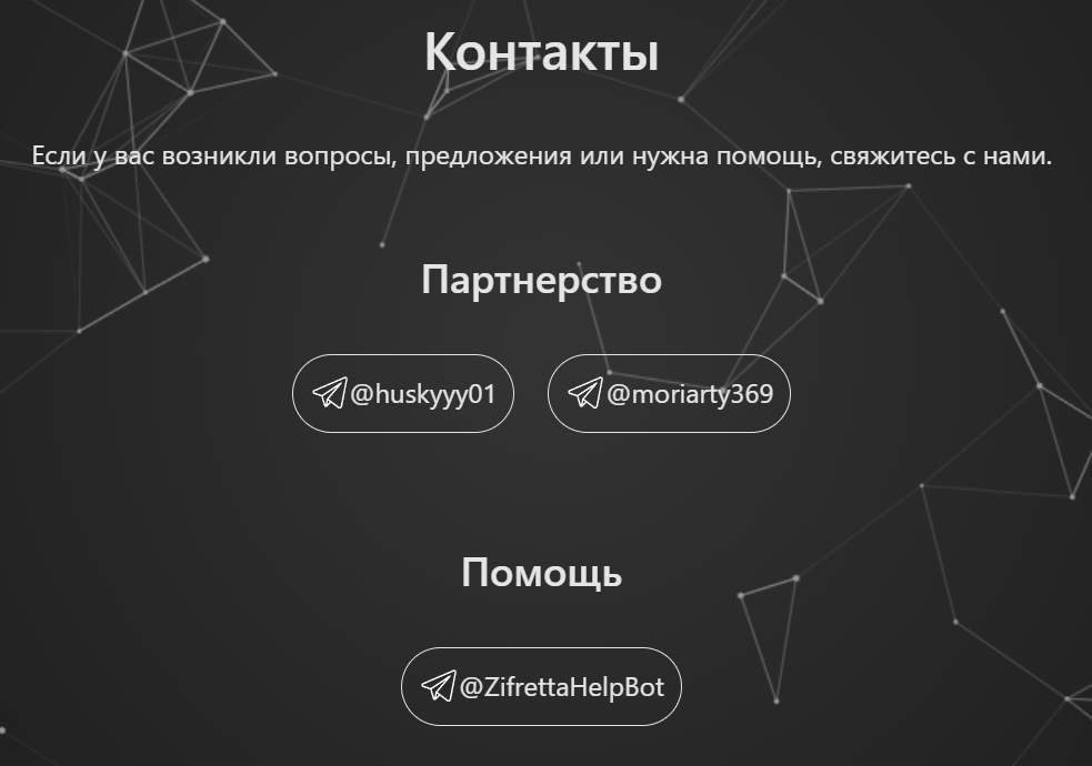 В качестве контактов на сайте представлены ссылки на неких разработчиков или админов ресурса Huskyyy01 и Moriarty369.