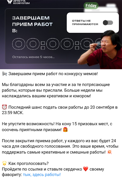 В Телеграмме публикуется конкурс на раздачу NFT-билетов площадки.