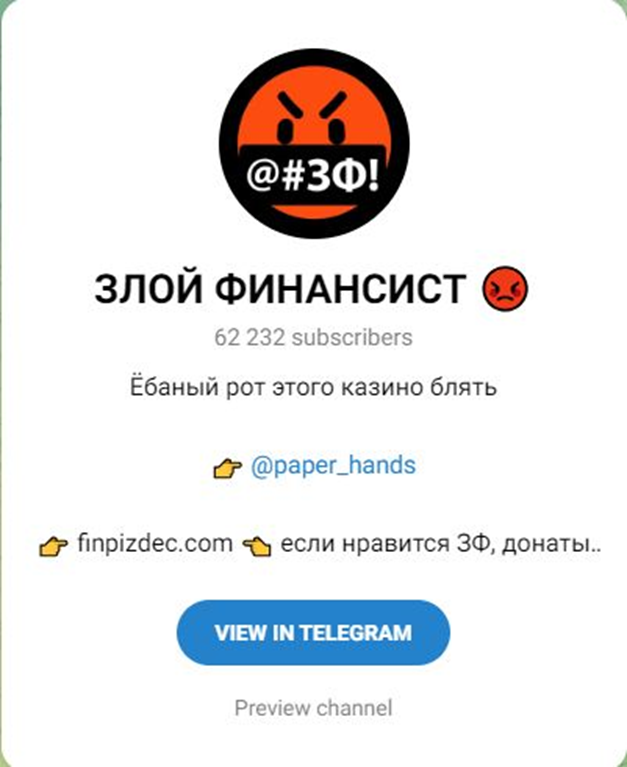 Обзор телеграмм-канала «Злой финансист»: можно ли с ним заработать, отзывы реальных пользователей об Finpizdec, развод или нет, что известно об инвесторе Paper Hands