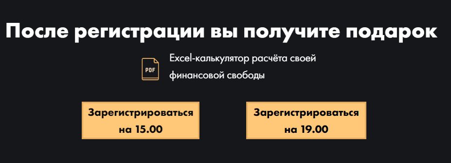 Чтобы научиться подобному инвестированию, он предлагает посетить его бесплатный семинар в Москве. Пользователей он зазывает подарками, которые они получат после прохождения регистрации.