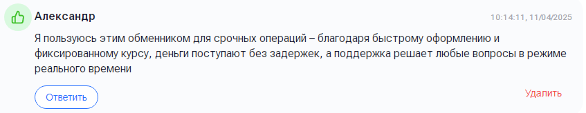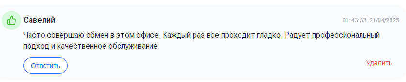 Изучим отзывы о Zver Exchange на сайте мониторинга обменников Exnode. Клиент по имени Савелий пишет, что регулярно совершает обмен в офисе, он выразил свое удовлетворение качеством обслуживания.