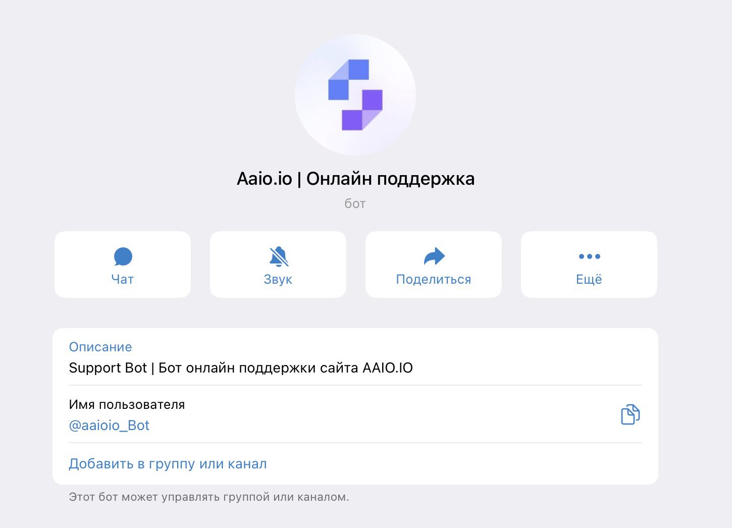 Техподдержка представлена телеграм-ботом @aaioio_Bot с задержкой ответа до 20 часов, бесполезным онлайн-чатом в личном кабинете и формой на сайте https://aaio.io/support с ответом до 3 дней.