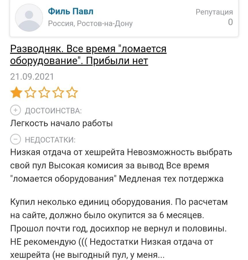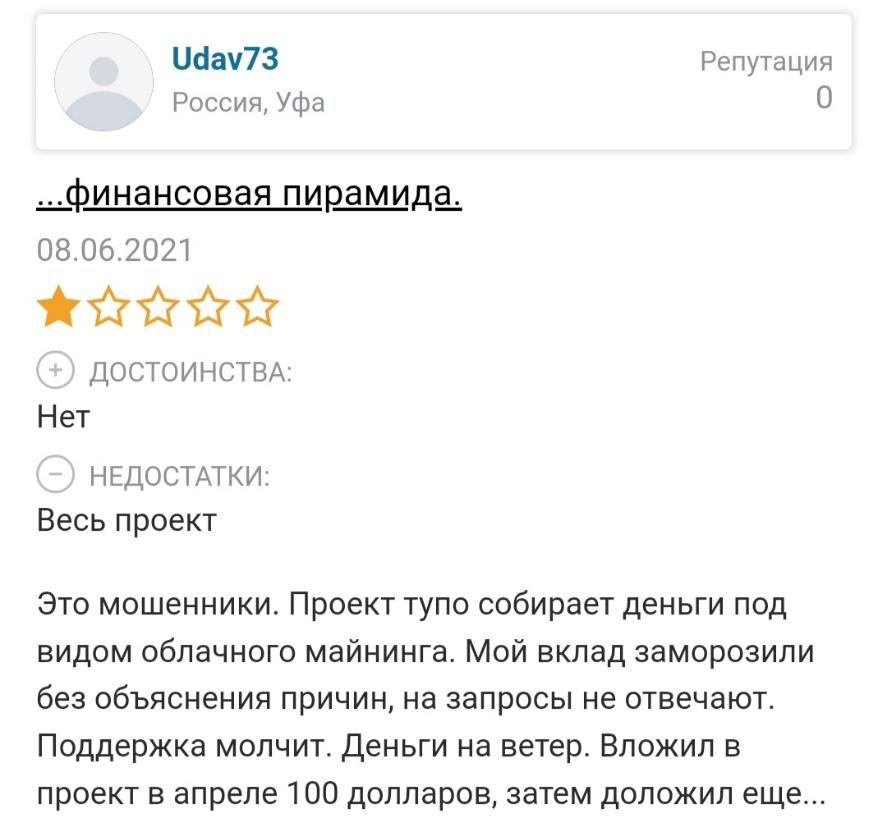 Всё же большинство людей оставляют негативные отзывы. Реальные клиенты не видят смысла работать с Cloud Bemine Club. Обосновано это разными причинами, например, оборудование быстро выходит из строя и вложенные средства тратятся на закупку новых. Создателям майнинга нужны лишь продажи, а вот качество продукции и прибыль никто не гарантирует. Также клиенты отмечают, что собственные счета по неизвестным причинам уходят в минус, а служба поддержки долго не отвечает на вопросы. Здесь становится ясно, что положительные комментарии про Be mine майнинг, скорее всего, являются фейковыми.