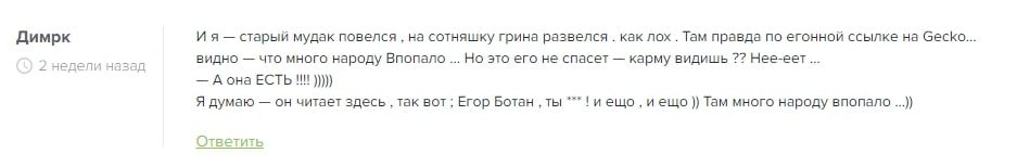 Множество пользователей в интернете оставили отрицательные отзывы о Егоре Пириеве и его рекламируемых токенах. Бывшие подписчики этого псевдо-трейдера пишут, что только после приобретения рискованного актива понимают, что продать его будет невозможно.