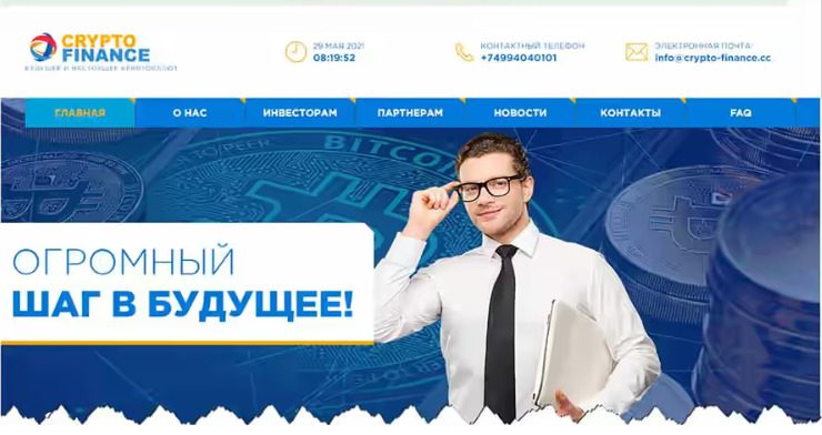Домен crypto-finance.cc был заблокирован, а вся информация с него была удалена, что указывает на то, что данный хайп-проект завершил свою деятельность. Проект существовал несколько месяцев, после чего закрылся.