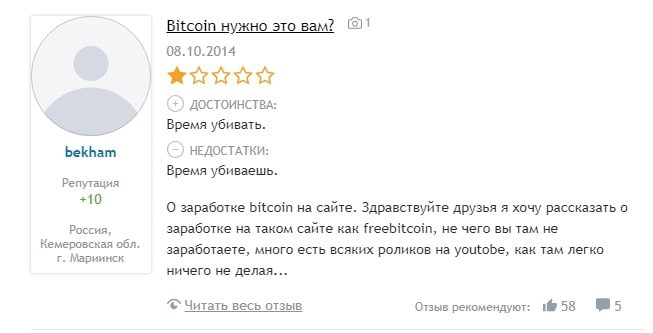 Отзывы о Фрибиткоин