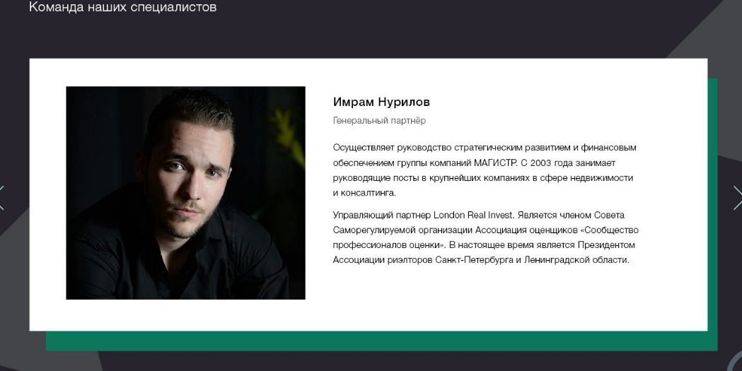По роду деятельности это похоже на риэлтерскую компанию, но только с выкупом недвижимости. Эта тема хорошо знакома владельцу фирмы Имраму Нурилову, который является еще и Президентом ассоциации риэлторов Санкт-Петербурга.