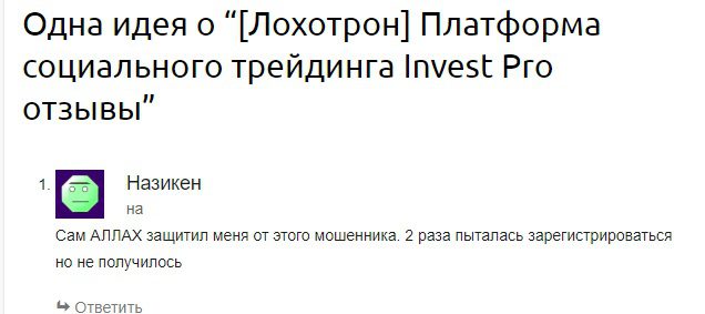 В сети мало отзывов об Invest Pro. Те, что удалось найти, носят резко негативный характер.