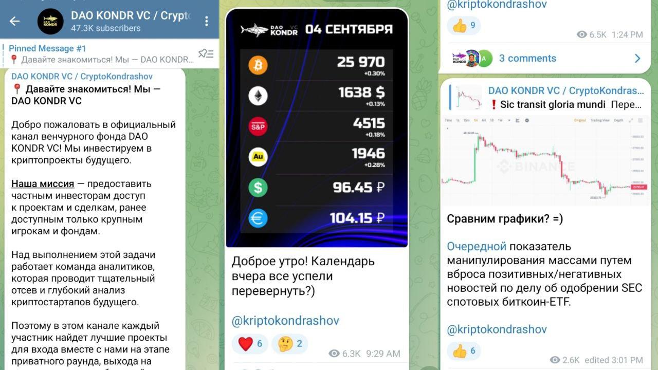 DAO KONDR VC — Телеграмм канал, принадлежащий инвестиционному проекту DAO KONDR VC. Здесь рассказывают про особенности фонда и предлагают инвестировать в криптопроекты. Можно ли доверять каналу, расскажем в обзоре.