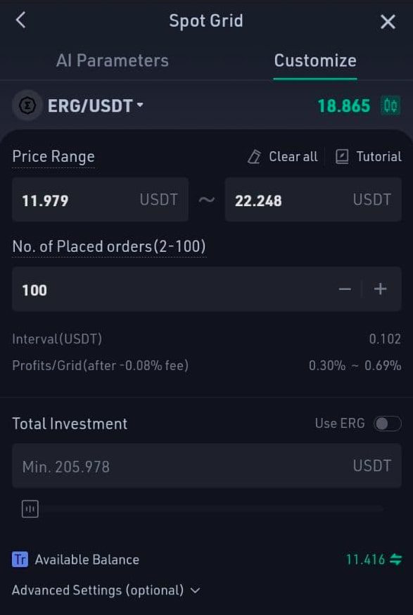 Доступны все торговые инструменты, но для каждой монеты необходимый депозит разный. Для некоторых сделки можно заключать с 1$ на счету, а другие требуют минимум 200 долларов. Доходность спотового бота составляет около 2-3% в сутки при грамотной настройке.