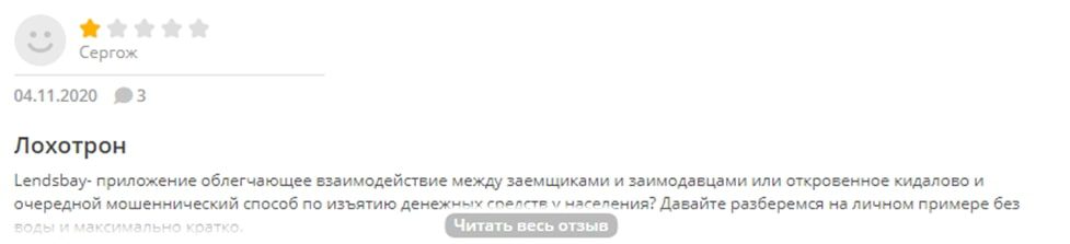- большое количество негативных отзывов, в том числе о том, что Lendsbay мошенники.
