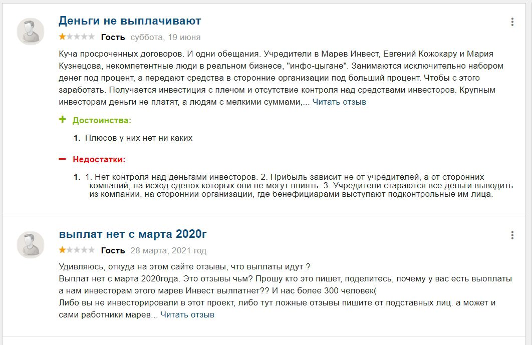 Исходя из этого, мы не рекомендуем Марев Инвест к сотрудничеству.