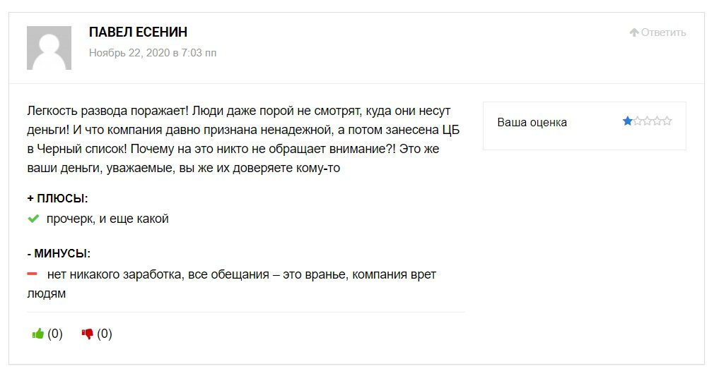 Если же заглянуть на сторонние ресурсы, то можно обнаружить не даепреимущественно резко негативные комментарии о брокере. Пользователи открыто утверждают, что это мошенник, который обманывает клиентов и никакого заработка не дает. Также они отмечают отсутствие выплат.