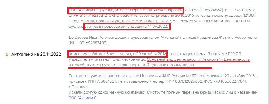 О себе контора рассказывает немного, единственная конкретика — 12-летний стаж оказания услуг в сфере инвестиций. Но это утверждение легко опровергнуть, ведь доменное имя https://mbtechnology-lcc.com зарегистрировано в сентябре 2022 года. Пользователь подписывает договор с ООО “Аксиома”, которое якобы является юридическим лицом конторы. Однако, проверка контрагента выявила, что данная организация работает с 2016 года, предоставляя клиентам в аренду грузовой транспорт, а в данный момент находится в процессе ликвидации. То есть представлять интересы MB Technology инвестиции не имеет законного права, мошенники просто присвоили себе название и используют контакты ООО.