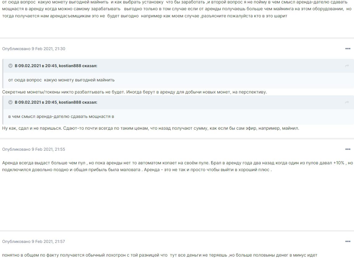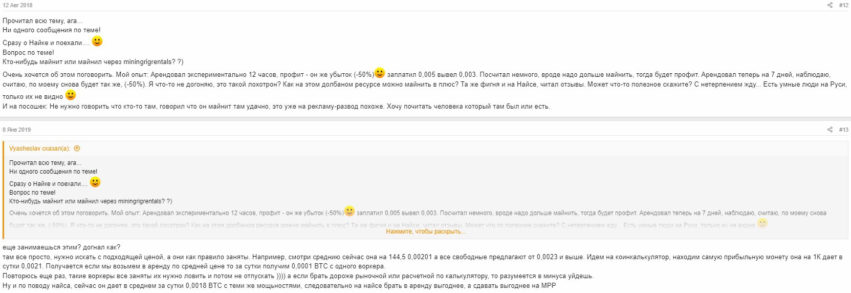 Другой клиент пробовал майнить по SHA 256 c Mining Rig Rentals в режиме теста, что независимо от длительности принесло ему убытки порядка 50 %. Ряд трейдеров утверждает — для выхода на стабильный профит требуется подождать, однако сколько времени займет этот процесс, неизвестно.