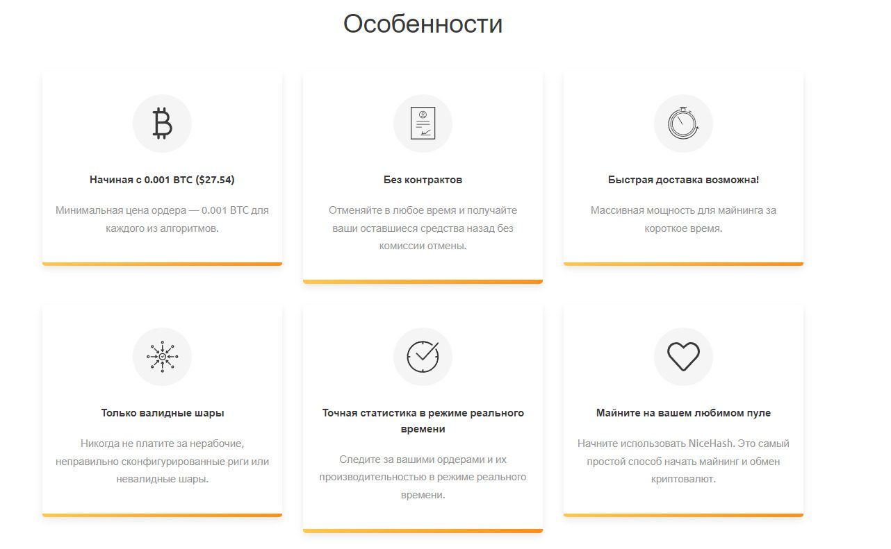 Nicehash Mining предлагает такие условия:- внутренняя биржа для покупки обмена крипты;