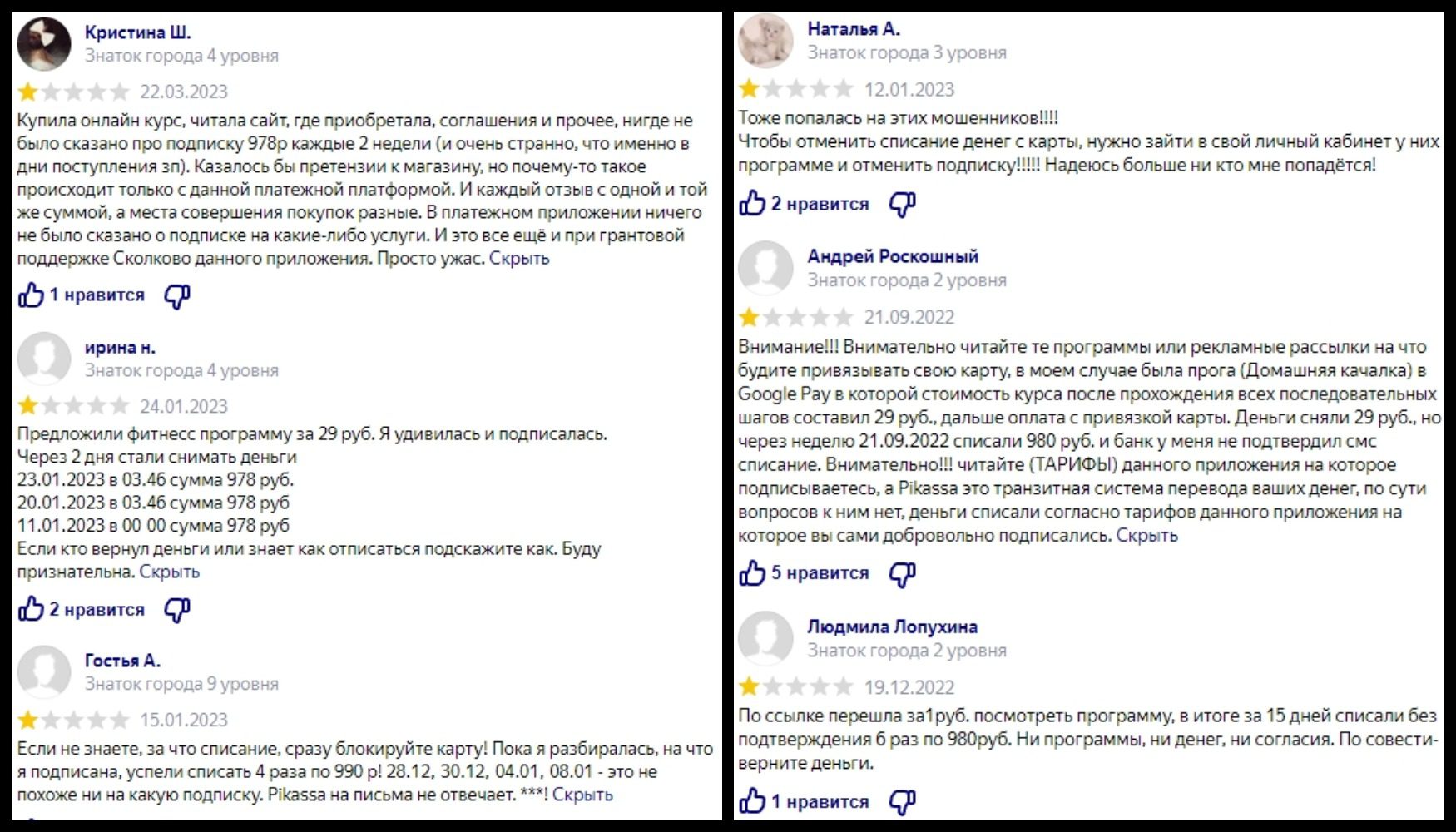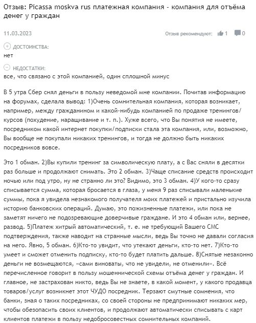 Pikassa — проект-посредник, оказывающий эквайринговые услуги частным предпринимателям и физическим лицам. В дополнение к относительно законному функционалу админы занимаются тайным отъемом денег у населения, собирая автоплатежи за навязанные услуги в виде подписок на сомнительные онлайн-курсы.