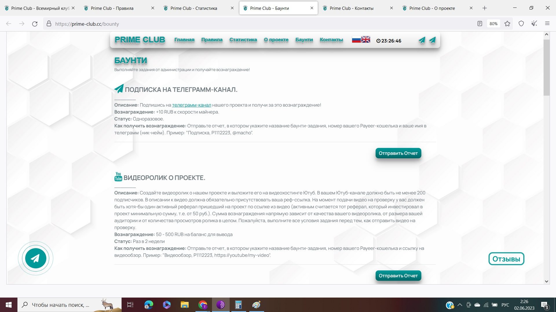 Условия для социальных сетей: канал или группа должны содержать не менее 200 живых подписчиков. У пользователя должны быть рефералы, хотя бы один из них сделал вложения на сайте. Получать вознаграждение за видео можно два раза в месяц, а за текстовые посты — каждые 24 часа.
