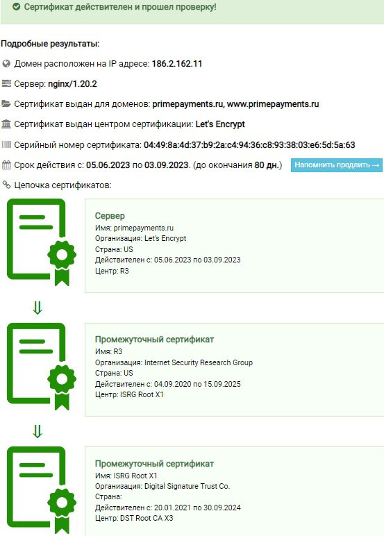 Сайт https://pay.primepayments.io работает с зимы 2021 года и имеет 3 действительных SSL-сертификата, а срок регистрации домена истекает в феврале 2024 года. На его создание потрачено порядка 4800 $, большая часть которых гарантированно ушла на проработку функционала ЛК.