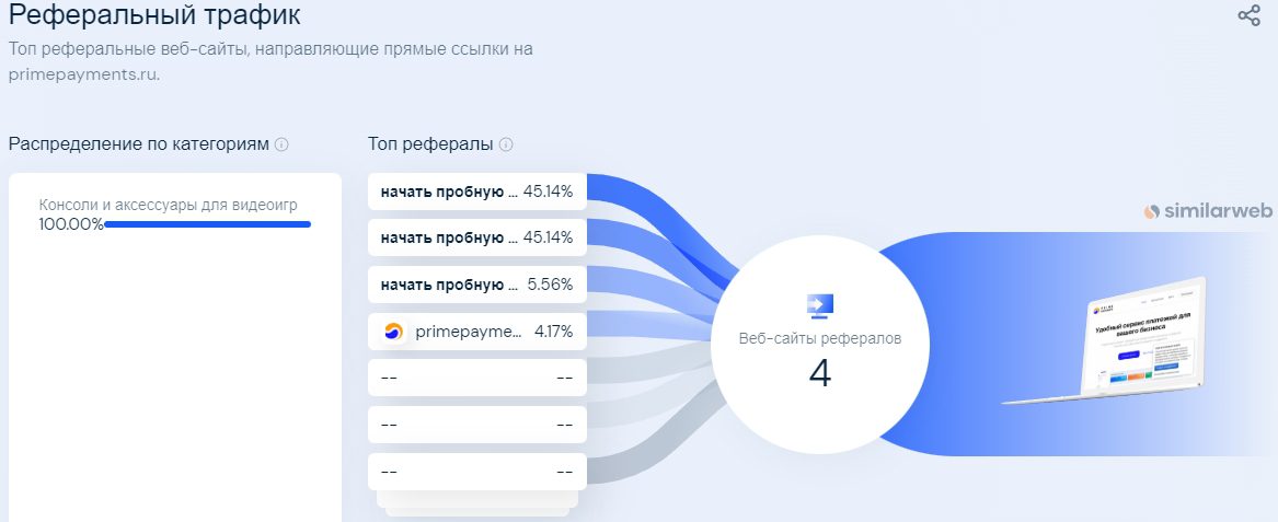 Прайм Пейментс поддерживает плагины для WordPress, OpenCart и WHMCS, а также серверов MMO-игры LineAge II. Первым онлайн-развлечением, для которого собственно и создавался сервис, была Arcana.su, а в структуре реферального трафика до сих пор 100 % занимают сайты категории «Консоли и аксессуары для видеоигр».