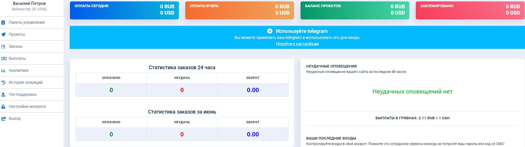 В нем клиенту предложены инструменты для управления проектами, а для подключения эквайринга потребуется соблюсти ряд условий. Главные из них — полная работоспособность сайта и продажа законодательно разрешенных услуг, а функционал онлайн-оплаты интегрируется через API.