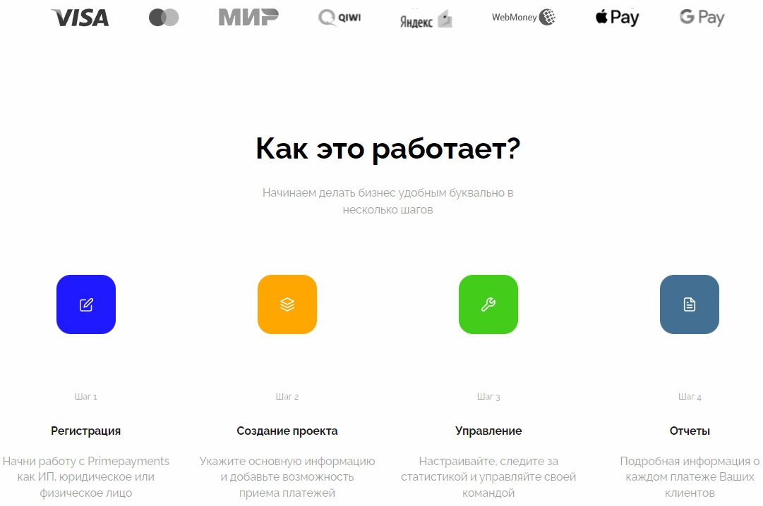 К примеру, поддержка WebMoney или ApplePay в текущих условиях для предпринимателя бесполезна, что связано с баном платежных систем на территории РФ. Еще один странный момент — отсутствие на primepayments.io тарифной сетки, поэтому на чем именно создатели сервиса подняли выручку на 1340 % за год, неизвестно.